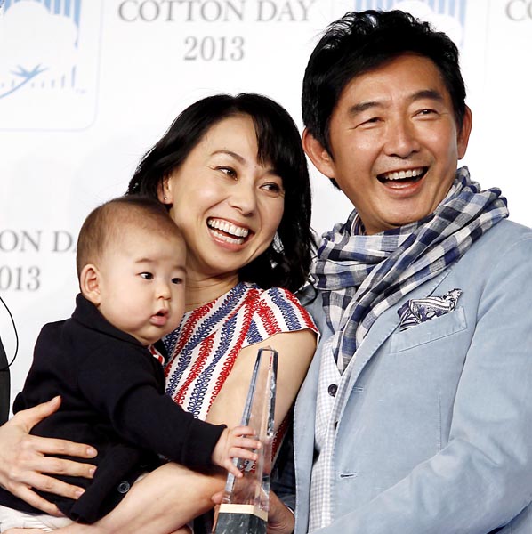 石田夫妻と長男の理汰郎くん(2013年)/(C)日刊ゲンダイ