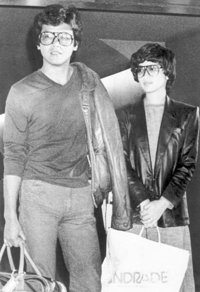 ハワイの新婚旅行から帰国した三浦友和、百恵夫妻(1980年11月26日、成田空港)/(C)共同通信社