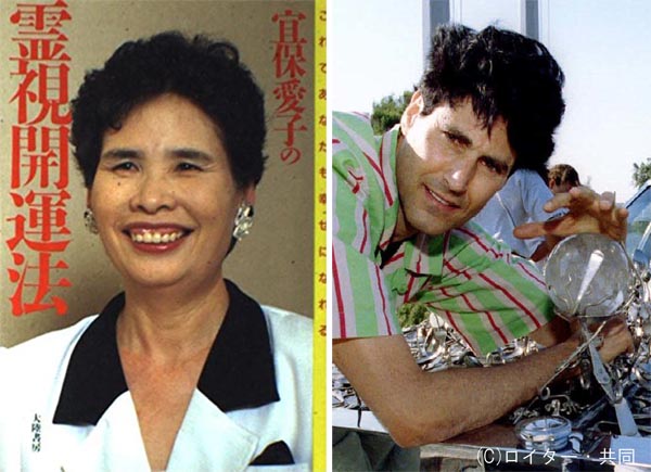 左から「宜保愛子の霊視開運法」(大陸書房)とユリ・ゲラー氏(C)日刊ゲンダイ