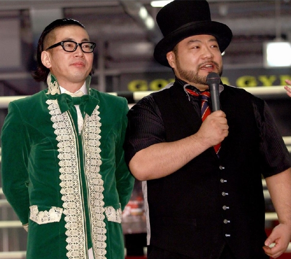 左が「髭男爵」ひぐち君、衣装は当時4万円!(2014年撮影)/(C)日刊ゲンダイ