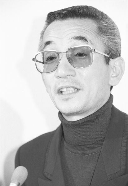 息子の木村一八の暴行事件を受け会見する横山やすし(C)共同通信社