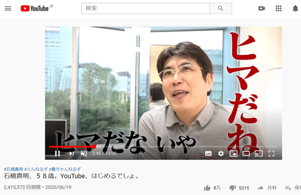 石橋貴明 登録者47万人でみえたユーチューバー転身の勝機