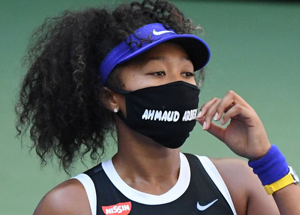 犠牲者の名前を書いた7つのマスクを着け、見事全米オープンを優勝した大坂なおみ(C)ロイター/USA TODAY Sports