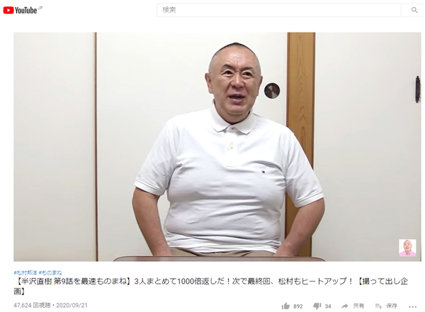 堺雅人演じる半沢直樹のものまねをする松村邦洋(YouTube「松村邦洋のタメにならないチャンネル」から)