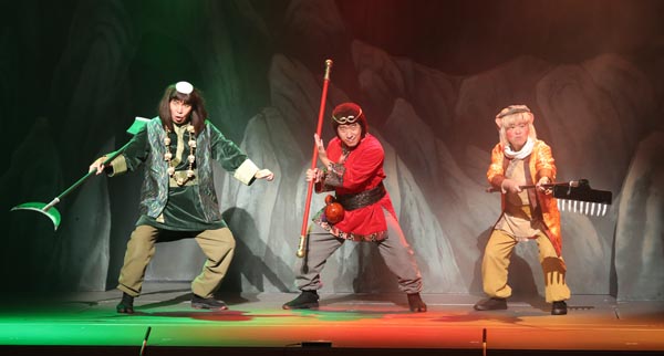 ダチョウ倶楽部(左から沙悟浄役の肥後克広、孫悟空役の寺門ジモン、猪八戒役の上島竜兵)/(提供写真)