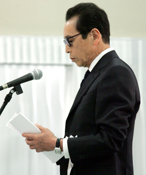赤塚不二夫氏葬儀の弔辞で「私もあなたの数多くの作品のひとつ」と話した(2008年8月7日)/(C)日刊ゲンダイ