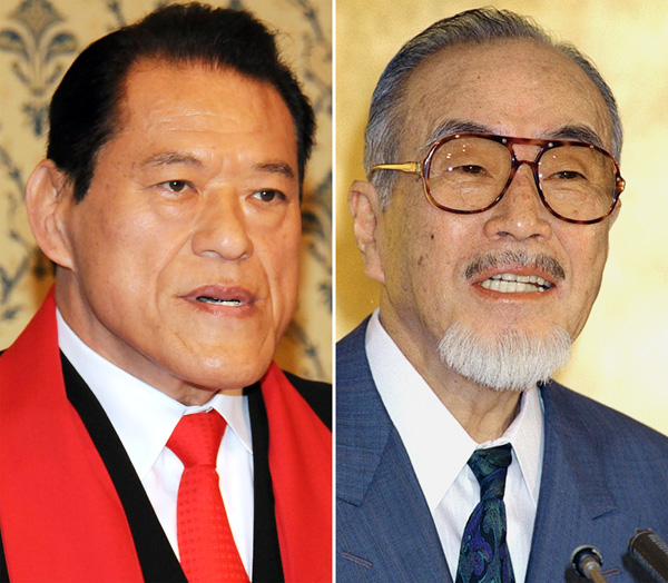 アントニオ猪木(左)と森繁久彌(C)共同通信社