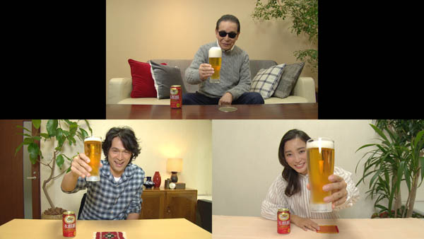 タモリ&江口洋介&杏がオンライン忘年会“3度注ぎ”で乾杯!