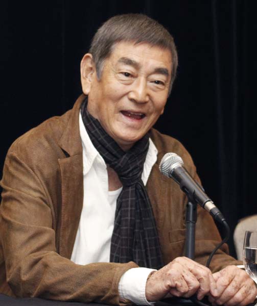 「あなたへ」が公式上映された、モントリオール世界映画祭の記者会見で、質問に答える高倉健さん(C)共同通信社