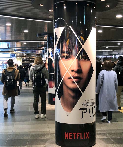 渋谷駅構内にある「今際の国のアリス」の広告(C)日刊ゲンダイ