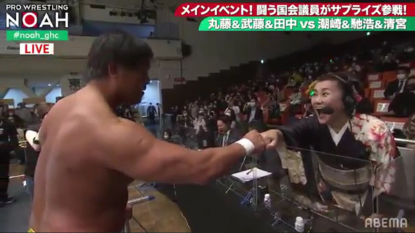 馳先生とグータッチ(提供写真)