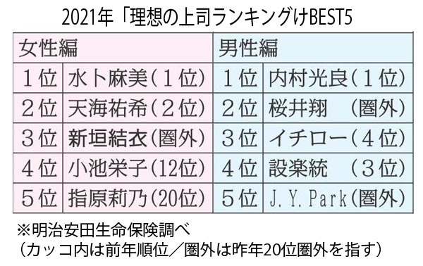 2021年「理想の上司ランキング」BEST5(C)日刊ゲンダイ