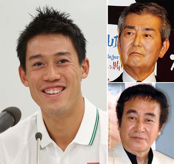 テニスの錦織圭選手(左)と渡哲也(右上)・渡瀬恒彦兄弟(C)日刊ゲンダイ