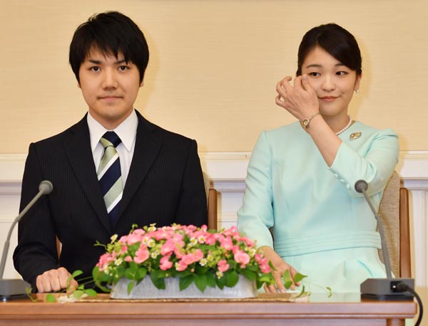 2017年9月の婚約内定会見での眞子さまと小室圭さん(C)代表撮影・JMPA