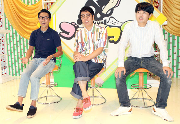 左からおぎやはぎ、劇団ひとり(2017年「ゴッドタン まさかの大型特番」会見)(C)日刊ゲンダイ