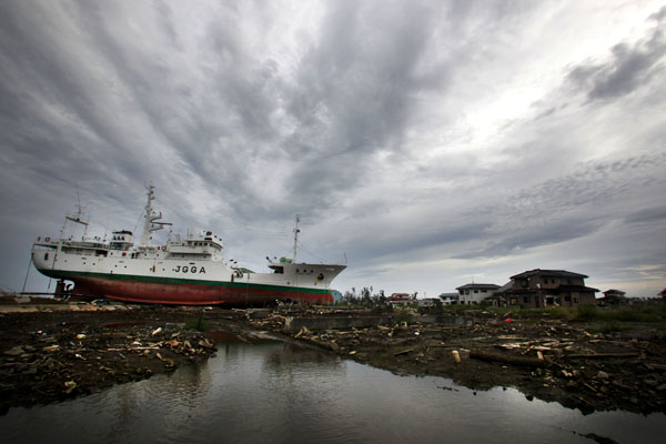 東日本大震災から10年(陸に打ち上げられた船と瓦礫:2011年撮影)/(C)日刊ゲンダイ