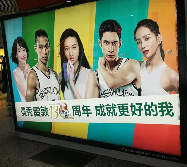 中国・上海のメンソレータムの広告(左端がのんで中央がKoki,)/(提供写真)