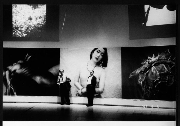 荒木と桑原甲子雄の二人展「ラヴ・ユー・トーキョー」(世田谷美術館)の会場で2人とも東京の下町生まれ、世田谷在住(1993年撮影)/(提供写真)
