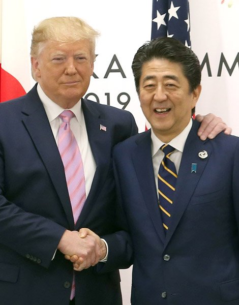日本で起きた異様な安倍ブームと瓜二つ(2019年G20大阪サミットでの日米首脳会談)/(C)日刊ゲンダイ