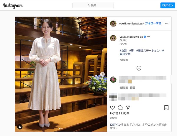 テレビ朝日の森川夕貴アナウンサー(本人のインスタグラムから)