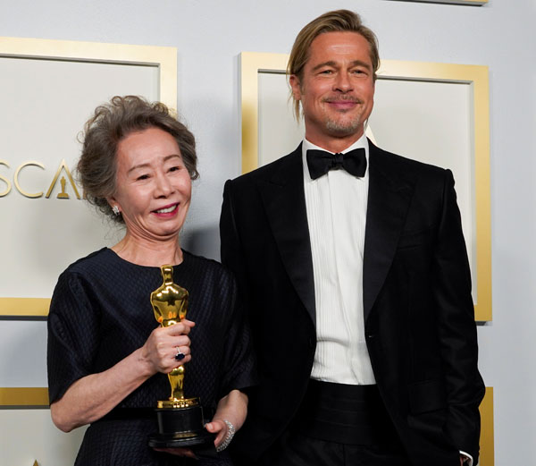 助演女優賞を受賞したユン・ヨジョン(左)とブラッド・ピット(C)ロイター