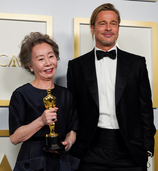 スピーチでも沸かせた(右はプレゼンターのブラッド・ピット)/(C)ロイター