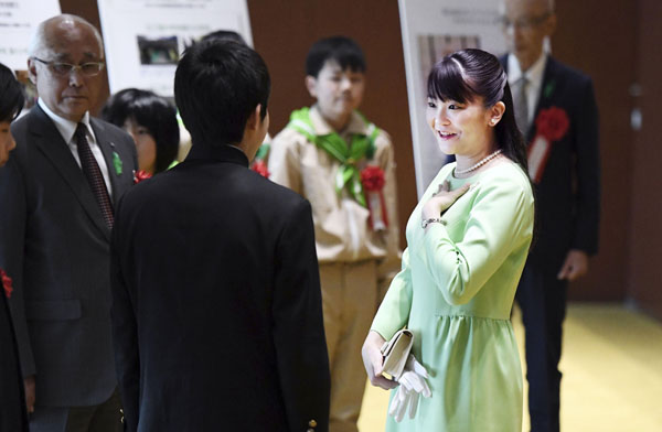 式典で受賞者に話し掛ける眞子さま(代表撮影)