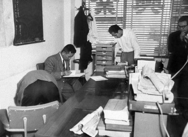 安藤組事務所の家宅捜索をする捜査員(1958年)/(C)共同通信社