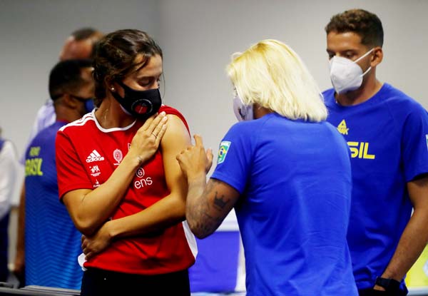 新型コロナウイルスのワクチン接種をするアスリートやスタッフ(C)ロイター