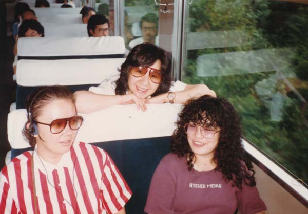 「姫」のホステスと旅行で。中央が山口氏、右が田辺まり子氏(田辺氏提供)