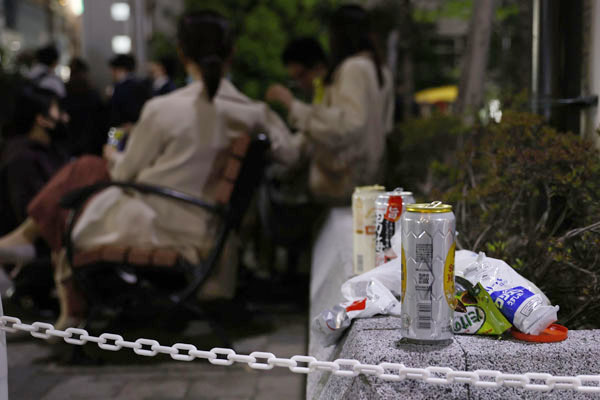 東京・新橋の公園に集まって酒を飲む人たち(C)共同通信社