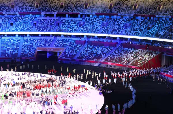 開会式での国立競技場のイス、奇麗でしょ?(C)JMPA