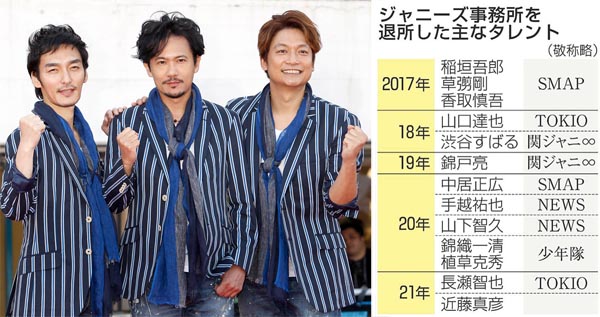 2017年に退所した元SMAPの3人(左から草彅剛、稲垣吾郎、香取慎吾)/(C)日刊ゲンダイ