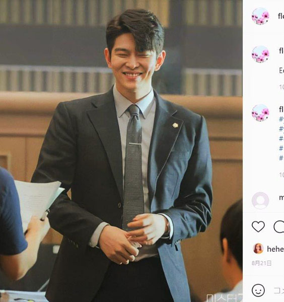 法廷シーン撮影中のひとコマ(ユン・ギュンサンのインスタグラムより)