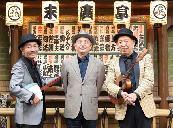 吉川潮を中央に東京ボーイズの菅六郎(左)と仲八郎(C)日刊ゲンダイ