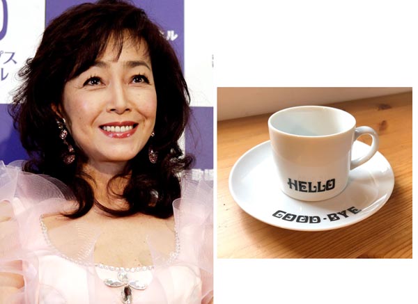 柏原芳恵と、「ハロー・グッバイ」由来の喫茶店のカップ(チャッピー加藤氏提供)/(C)日刊ゲンダイ