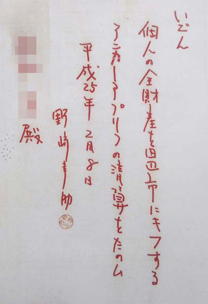 <116>「全財産を田辺市にキフする」赤いサインペンで書かれた異常な「いごん」