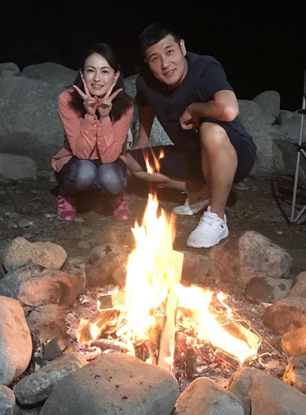 キャンプ場でバーベキュー。仲睦まじいお二人(提供写真)