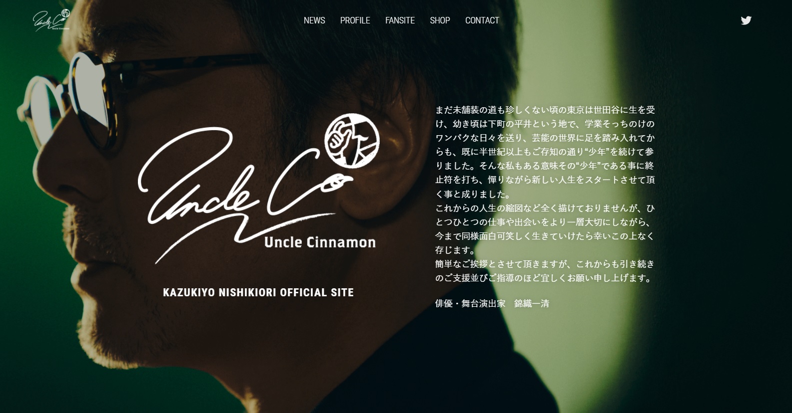 (錦織一清オフィシャルファンクラブ「Uncle Cinnamon」の公式ホームページ)