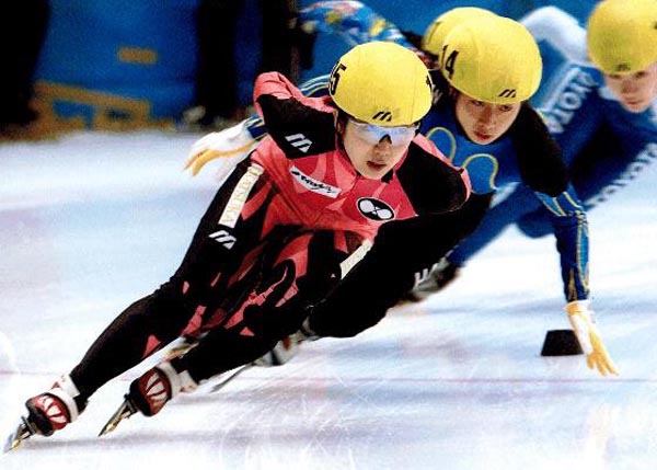 第29回全日本ショートトラック・スピードスケート選手権大会(2005年12月)先頭が勅使川原さん(提供写真)