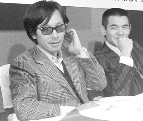 深作欣二監督(「仁義なき戦い」の製作発表で=右は菅原文太)/(C)共同通信社