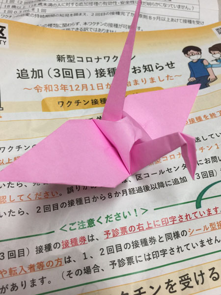 待ってる間ヒマなので何げに癖で鶴を折り…