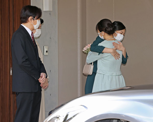 秋篠宮ご夫妻が見守られるなか、佳子さまと抱き合う小室眞子さん(代表撮影)