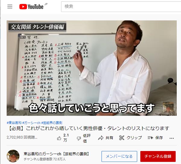 東谷義和のガーシーch【芸能界の裏側】(YouTubeから)