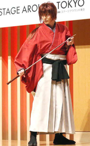 ミュージカル「るろうに剣心 京都編」制作発表会見で殺陣を披露する小池徹平(C)日刊ゲンダイ