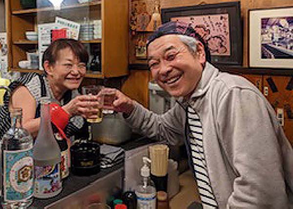俳優の佐藤正宏さん。「すみれ」の現女将のやっこちゃんと(提供写真)