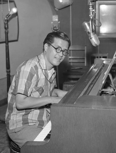 ピアノを演奏する三木鶏郎(C)共同通信社