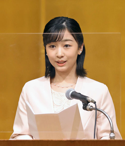 日本乳癌学会の記念式典であいさつされる秋篠宮家の次女佳子さま(代表撮影)