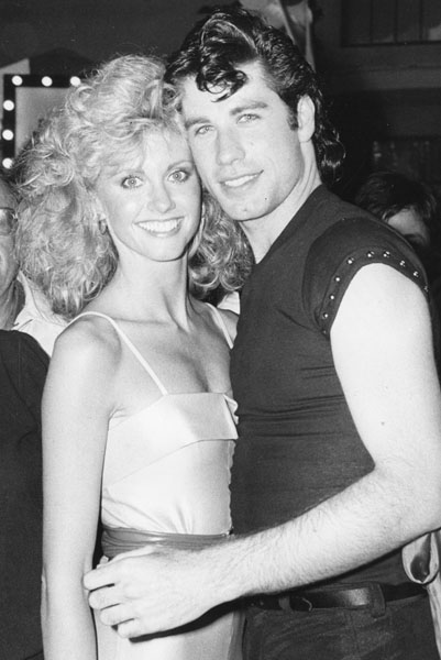米映画「グリース」主演のオリビア・ニュートン・ジョン(左)とジョン・トラボルタ(C)UPI=共同
