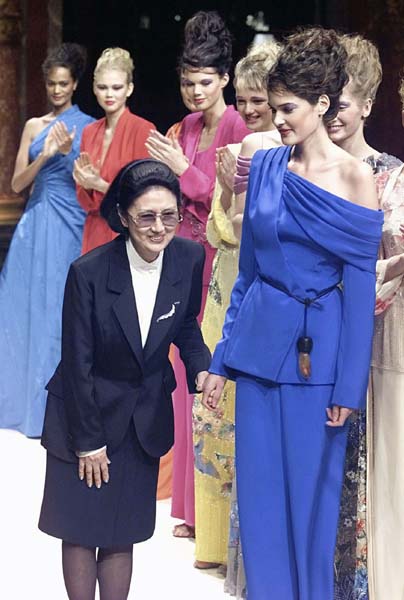 パリで開いたファッションショーの最後にあいさつする森英恵さん(手前左)/(C)AP=共同